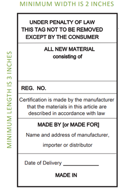 - 法律标标签上的所有印刷品必须是永久性墨水,并且是英文的。打印的颜色必须白底黑字。